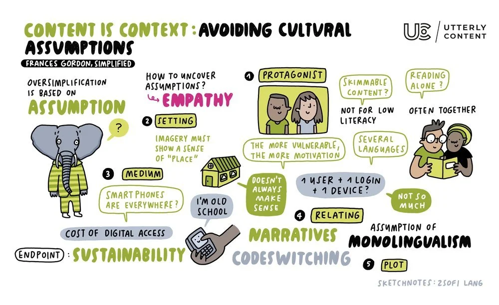 Zsofi worked with us during the Utterly Content 2022 conference to create sketchnotes for our keynote talks. She was an active listener and participant of the keynotes as she was talking the notes, and created really beautiful illustrations that captured our speakers' key points. We love that she used our conference colours and our speakers were very happy with this gift!